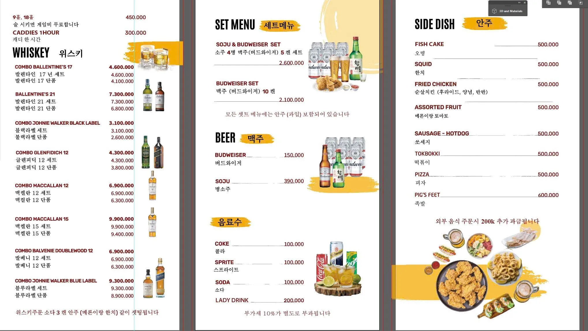 | 소주세트 | 소주4병+맥주5캔+과일 | 2,600,000VND |