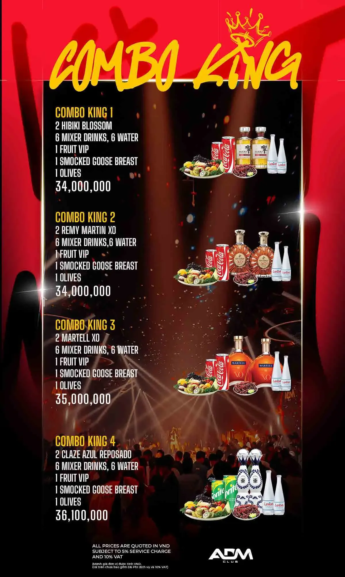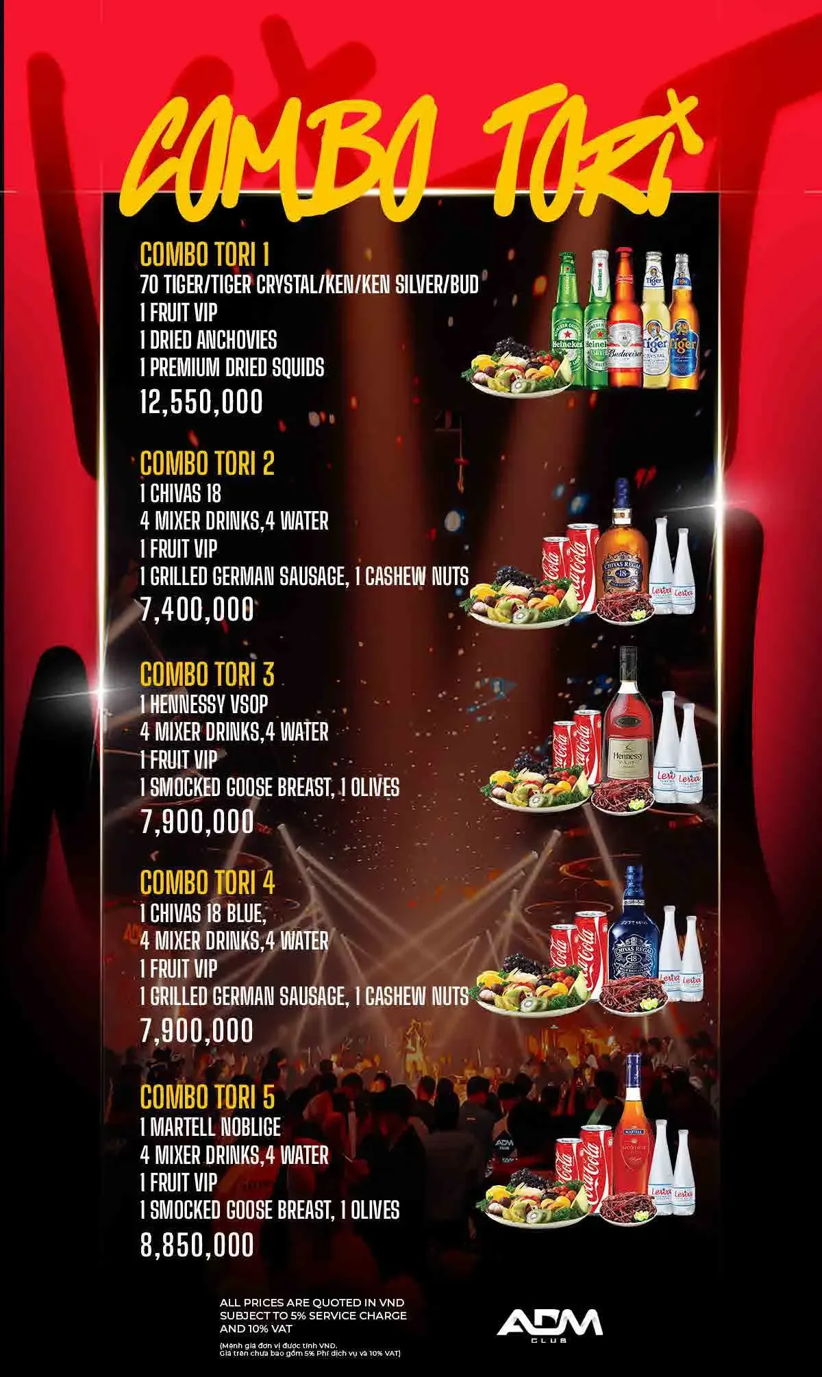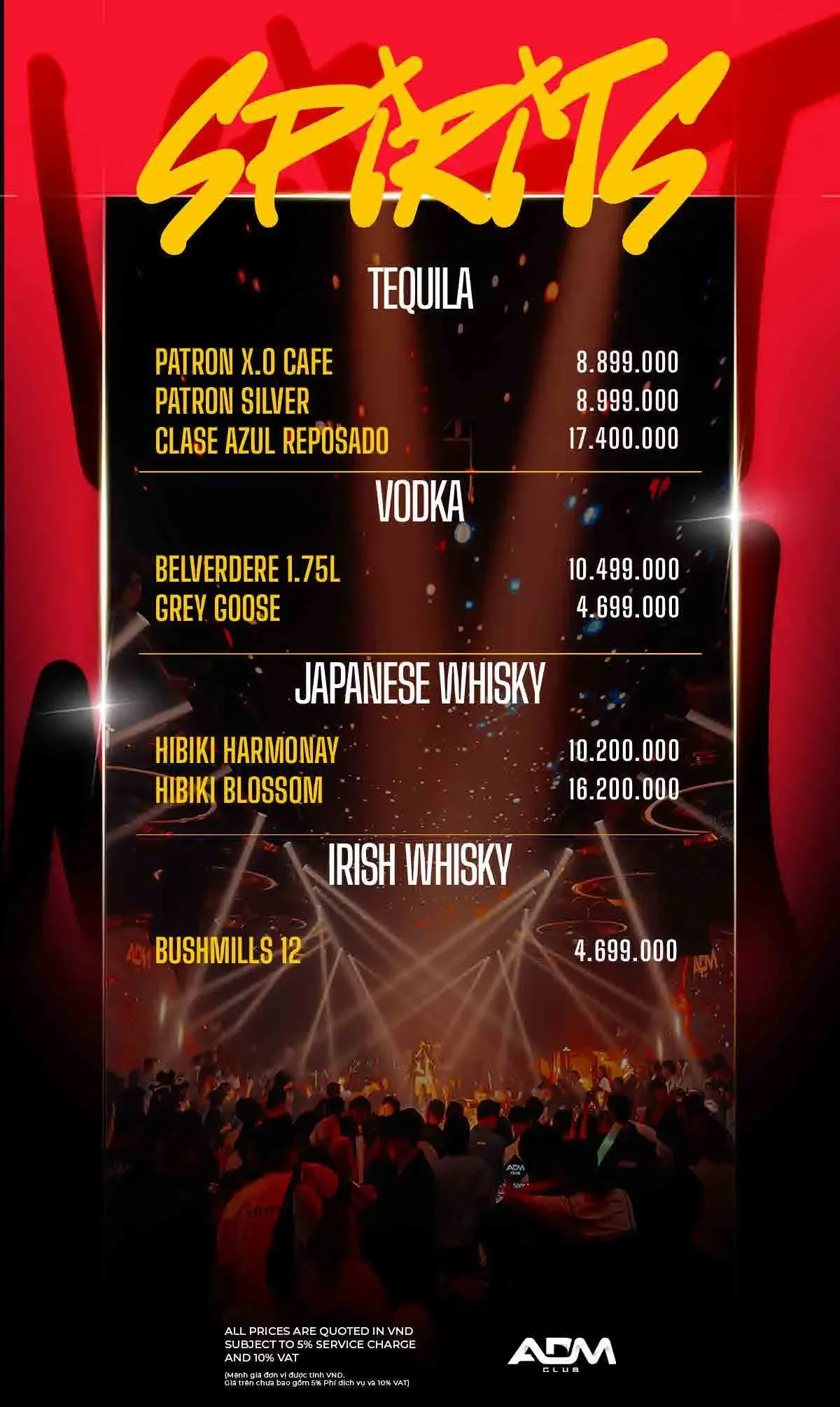 ADM 클럽 이름답게 EDM 클럽 음악이 주를 이루며, 화려한 댄서들과 조명 및 사람들이 가득합니다.