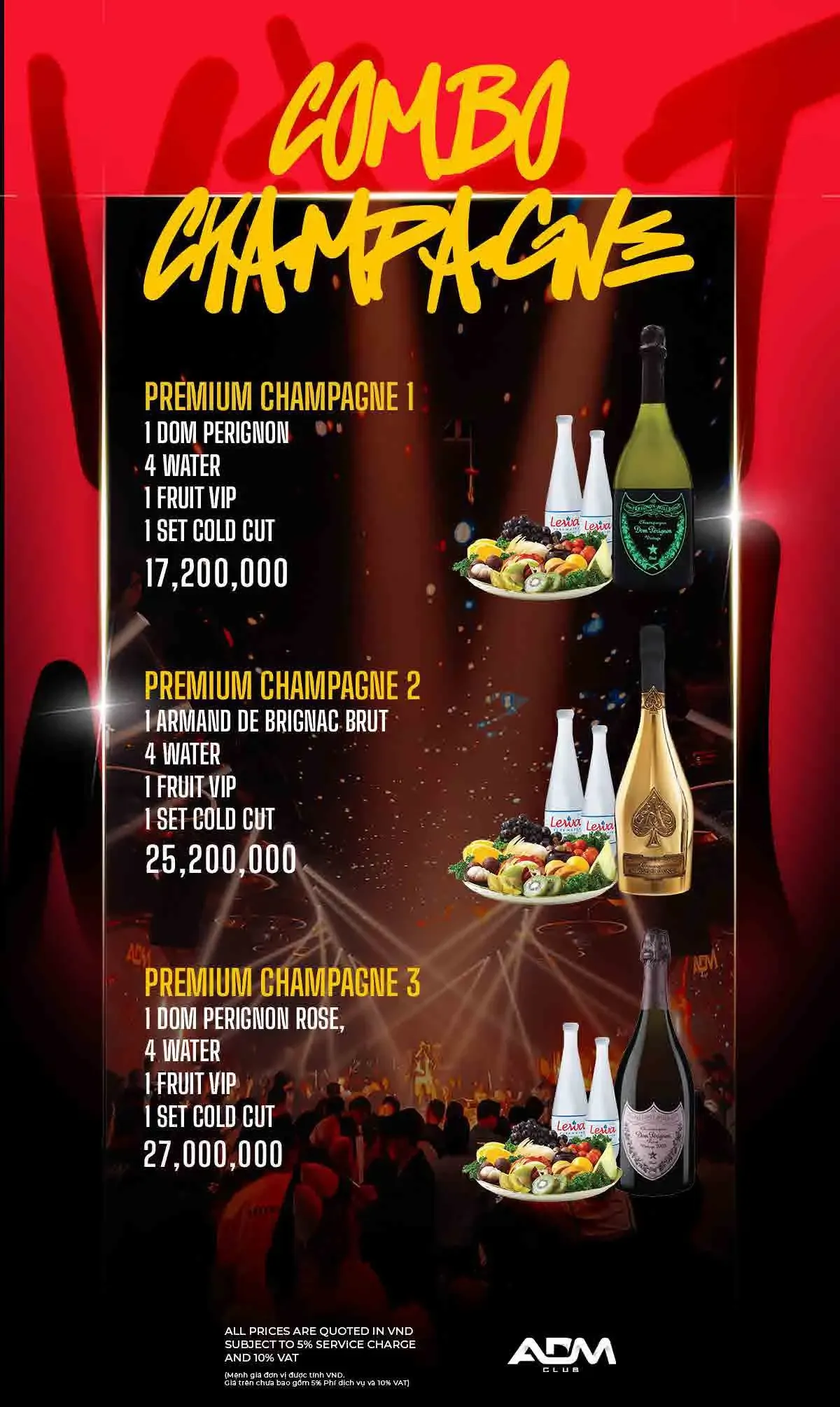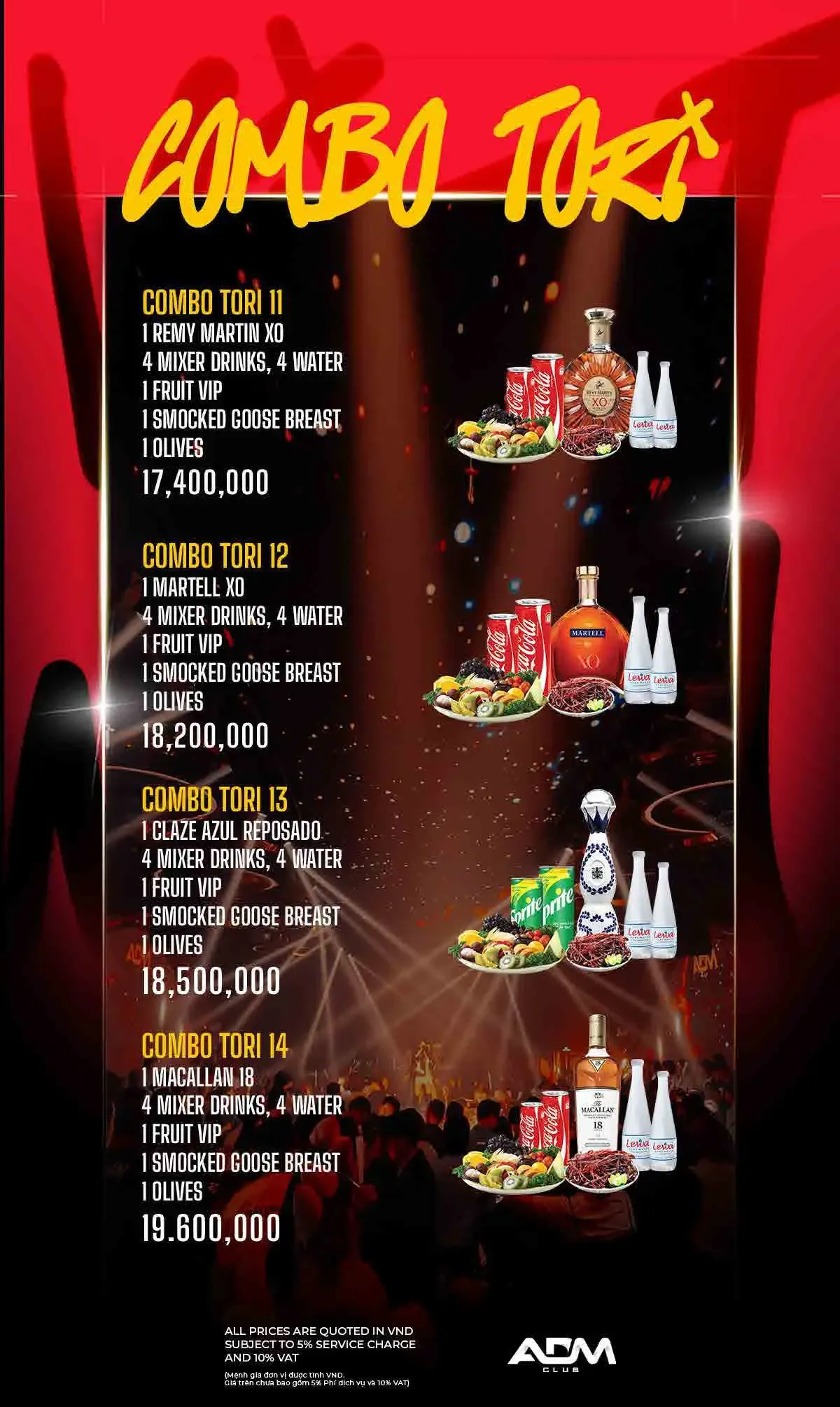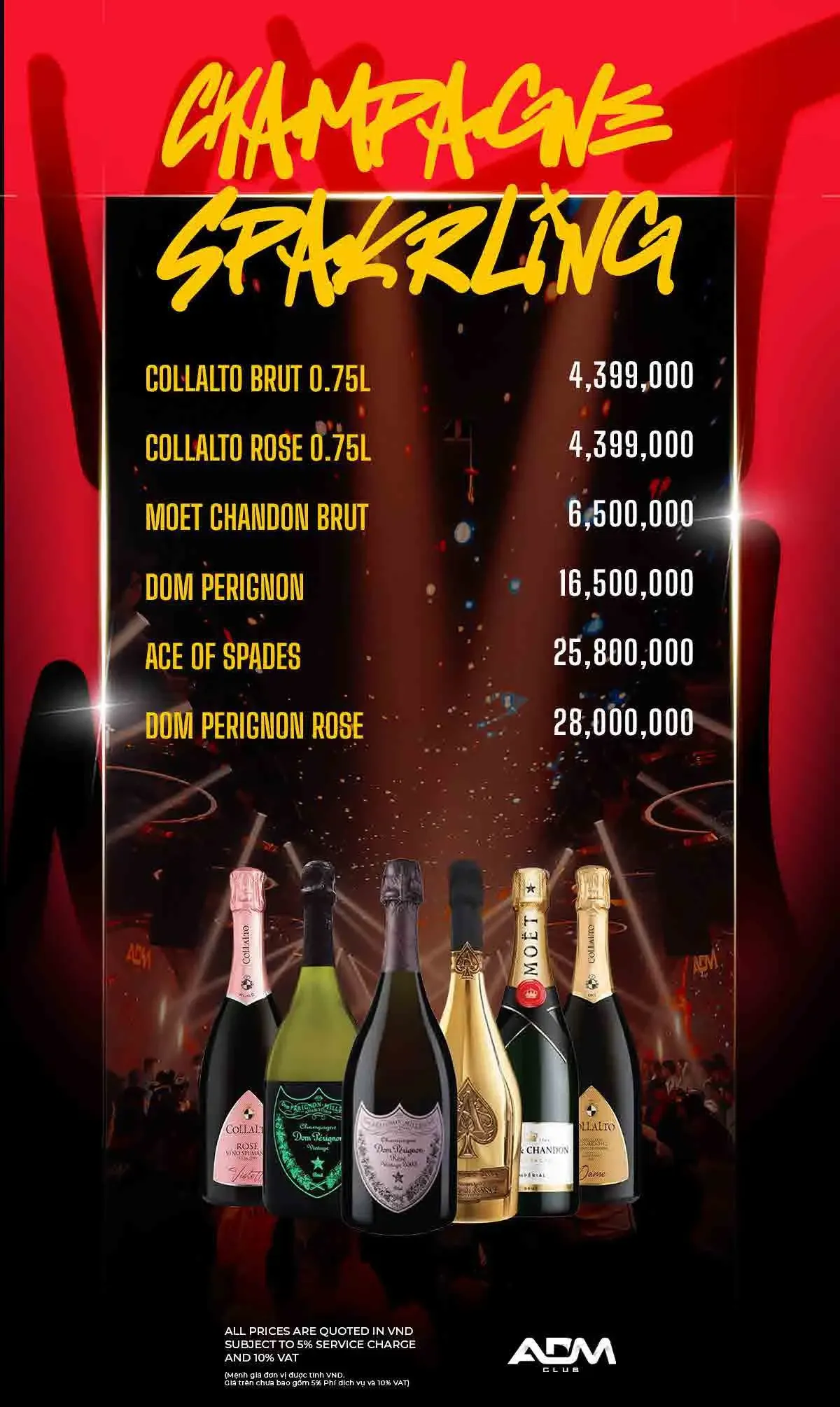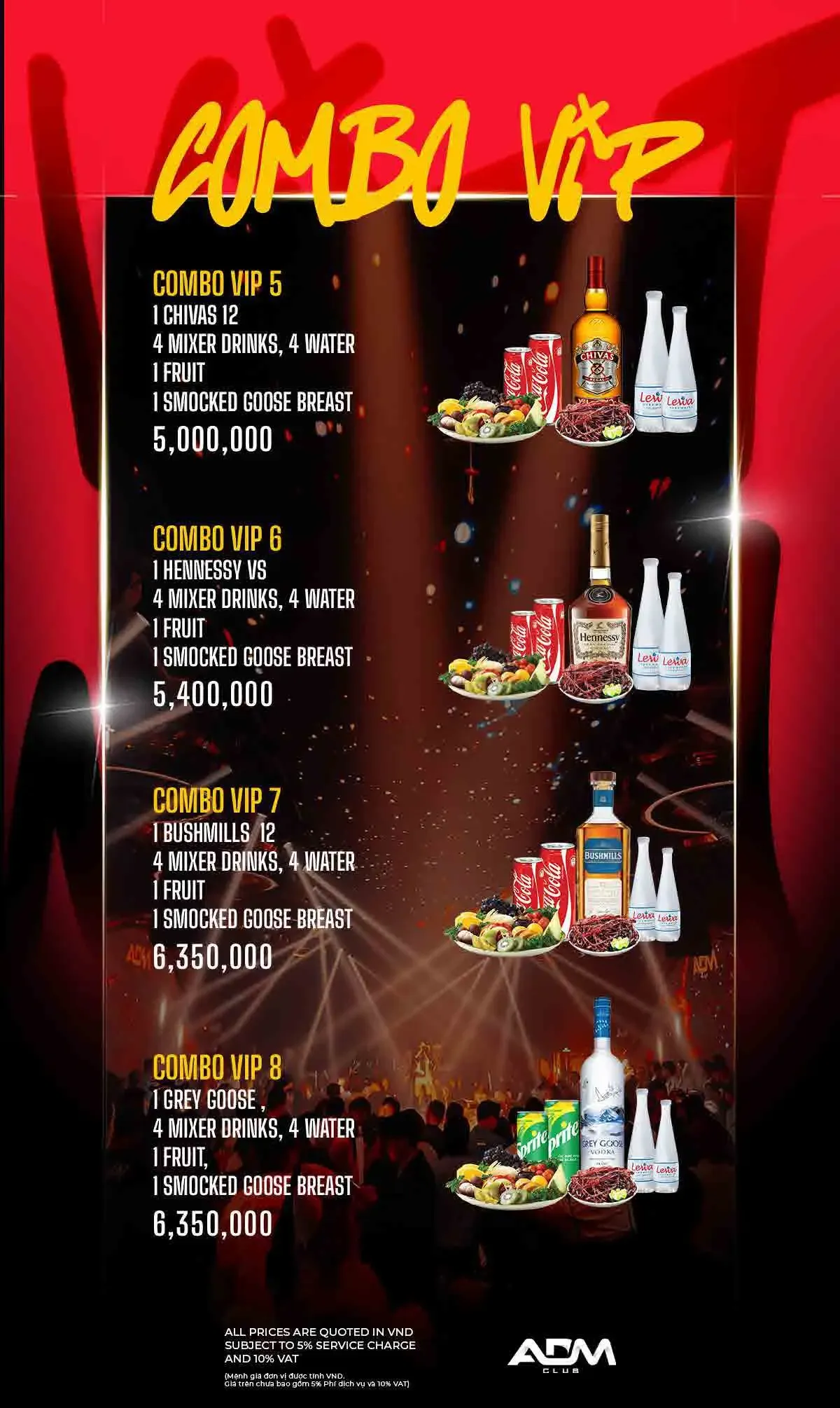 ADM 클럽 이름답게 EDM 클럽 음악이 주를 이루며, 화려한 댄서들과 조명 및 사람들이 가득합니다.